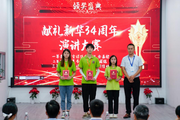 廣州新華互聯(lián)網(wǎng)科技學(xué)校學(xué)生處副主任為獻(xiàn)禮新華34周年演講大賽一等獎余嘉欣 、二等獎 趙威銘 、三等獎 劉佳怡頒發(fā)榮譽(yù)證書。