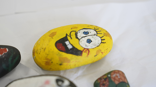 同學(xué)們用天馬行空的想象力帶來了一個(gè)個(gè)精美的作品,在同學(xué)的手中石頭也能瘋狂">